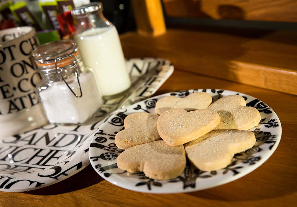 - Well stocked hospitality tray with homemade biscuits